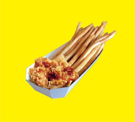 ・当店一番人気!アメリカンロングポテトに次ぐ人気の中津からあげをトッピング!